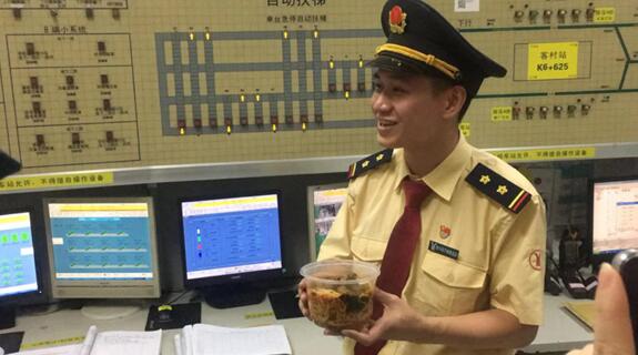 三兩口扒拉完長壽面,杜磊又迅速返回到工作崗位上。作為行車值班員,他迅速並准確地報送著每個時間額段的客流數,認真監控車次間隔,為客控提供數據支撐。雖無法與妻兒同慶新中國以及自己的生日,但奮戰在客控第一線守護客運安全就是他的一針強心劑。當晚23:00,客村站客控全部取消,國慶長假的第一天大客流對戰也畫上了完美的句號。