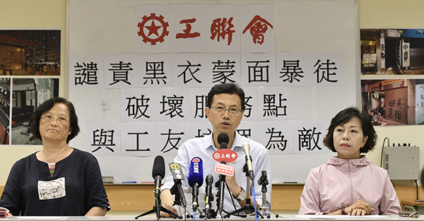 他續指,工聯會及其服務點無辜成為攻擊目標,部分服務點受損程度嚴重,未能如常服務,影響了工會對工友的服務,暴徒的所作所為無疑是與香港「打工仔女」為敵的惡行。