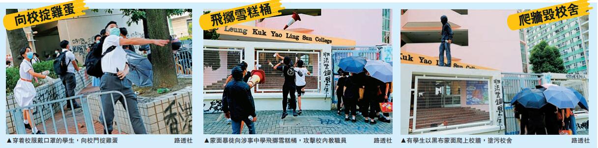 教育局昨日表示,這些蒙面學生已經不再是表達訴求或意見,亦不是宣揚政治主張或理念,而是涉及刑事行為。局方予以嚴厲譴責,並支持校方把案件交由警方嚴正調查。