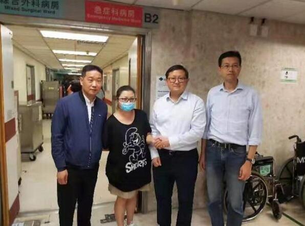 黃英豪(右二)與吳秋北(右一)今日到醫院看望鄭姓司機。文匯報