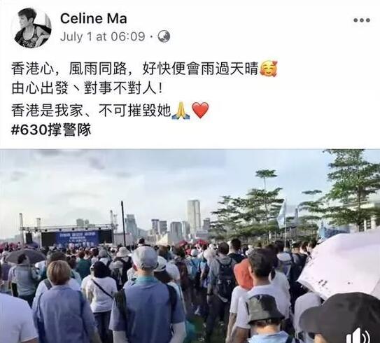 自近期香港事件以来,马蹄露不时在社交平台发表爱国爱港及撑警言论,上月她还呼吁大家一齐做护旗手,又捐赠物资到警局,并留言︰「支持香港警察严正执法!辛苦了!你们并非孤军作战,内地有很多同胞支持香港警察!祖国万岁。」