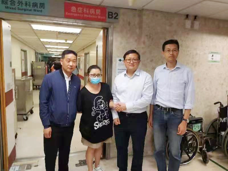 黃英豪(右二)、吳秋北(右一)到醫院探望被「私了」打傷的的士司機,並向家屬慰問。