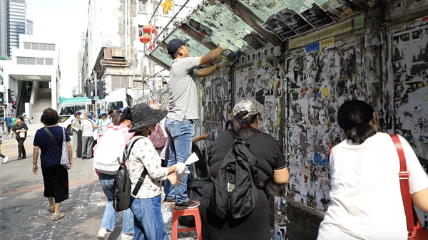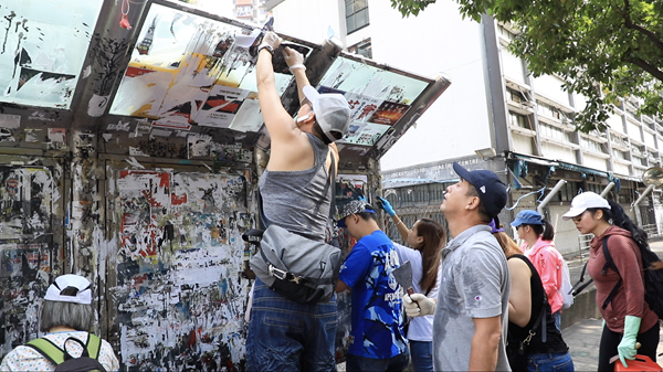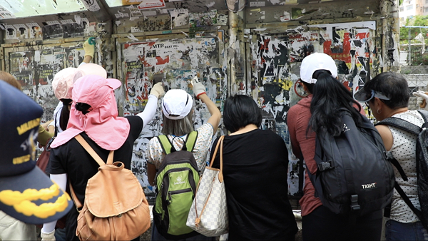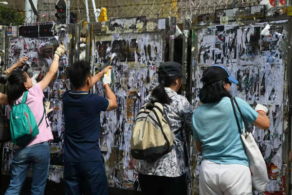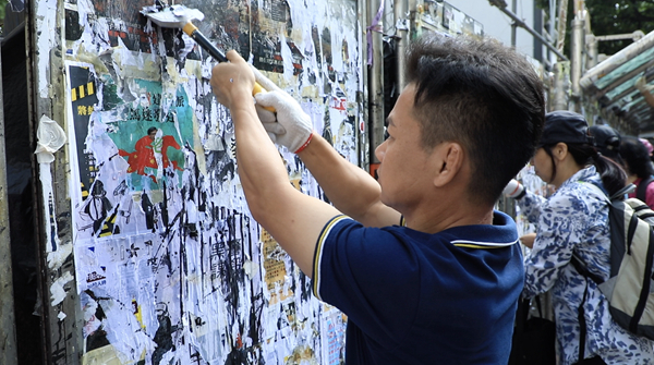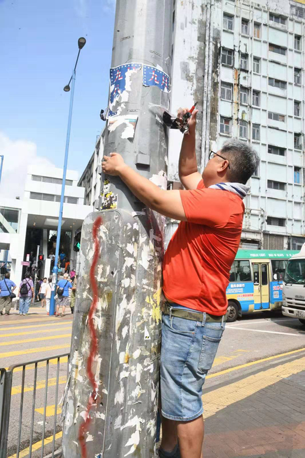 在橋上爬高爬低撕走宣傳紙的王先生,汗流浹背。已多次自發清理多區「連儂牆」的他認為,這些「連儂牆」鋪滿紙條、海報,本來已十分影響市容,更嚴重的是不少信息帶威嚇性、提到分離主義,會給訪港旅客尤其是內地遊客留下壞印象,「絕大多數香港人想念原來乾淨、有秩序的香港」。