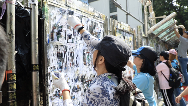 市民自發清理「連儂牆」。(大公文匯全媒體)