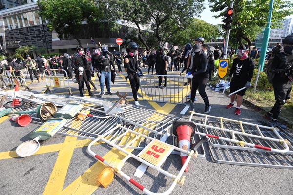 多場反修例示威遊行演變成暴動,暴徒肆意破壞街頭交通燈、拆毀路邊鐵欄杆及掘起路磚用以堵路和作武器。