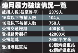 陳帆續指,港鐵方面,過去數天港鐵設施亦遭受嚴重破壞。當中包括83個港鐵車站、42個輕鐵車站受到破壞,另有1200部入閘機、1200部票務機、900部閉路電視、40台升降機損毀。還有信號系統受到破壞、站長室被縱火、車站顯示屏破壞。
