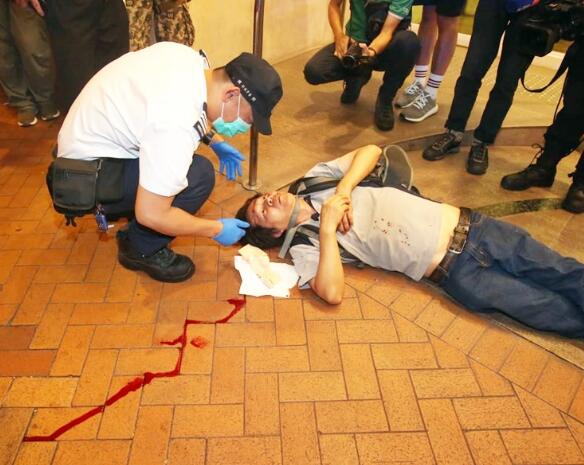 【香港商报网訊】一名52歲男子凌晨零時左右在港鐵太子站外,從「連儂牆」撕下兩張纸時,被10人追打至對面馬路,頭部受傷,血流披臉,送院治理。
