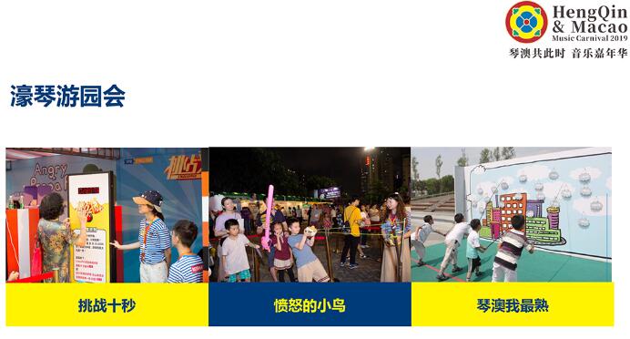 本次嘉年華活動分為四個部分,「濠琴音樂舞臺」由五支樂隊組成,包括三支澳門樂隊、一支國際樂隊、一支內地樂隊,他們將為大家帶來電子、放克、搖滾、布魯斯和爵士等多種音樂風格的表演;文創集市由「澳門時光墟」和珠海城市記憶收藏館組成,使澳門與珠海的文創產品融為一體交相輝映,「濠琴美食匯」將匯聚具有珠澳兩地特色的各類美食,除此之外還有具有濃於澳門風情的土風舞巡遊。