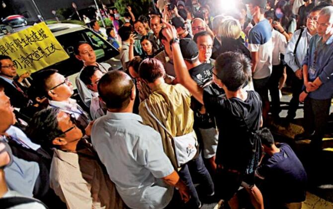 大批中大學生將段崇智座駕包圍,拒絕放行
