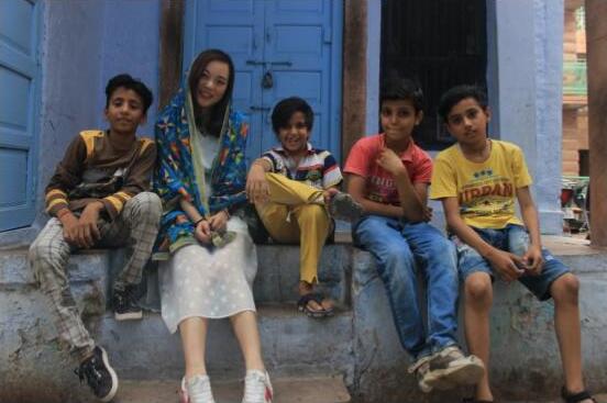 高晨在走訪中,和印度本地孩子在一起