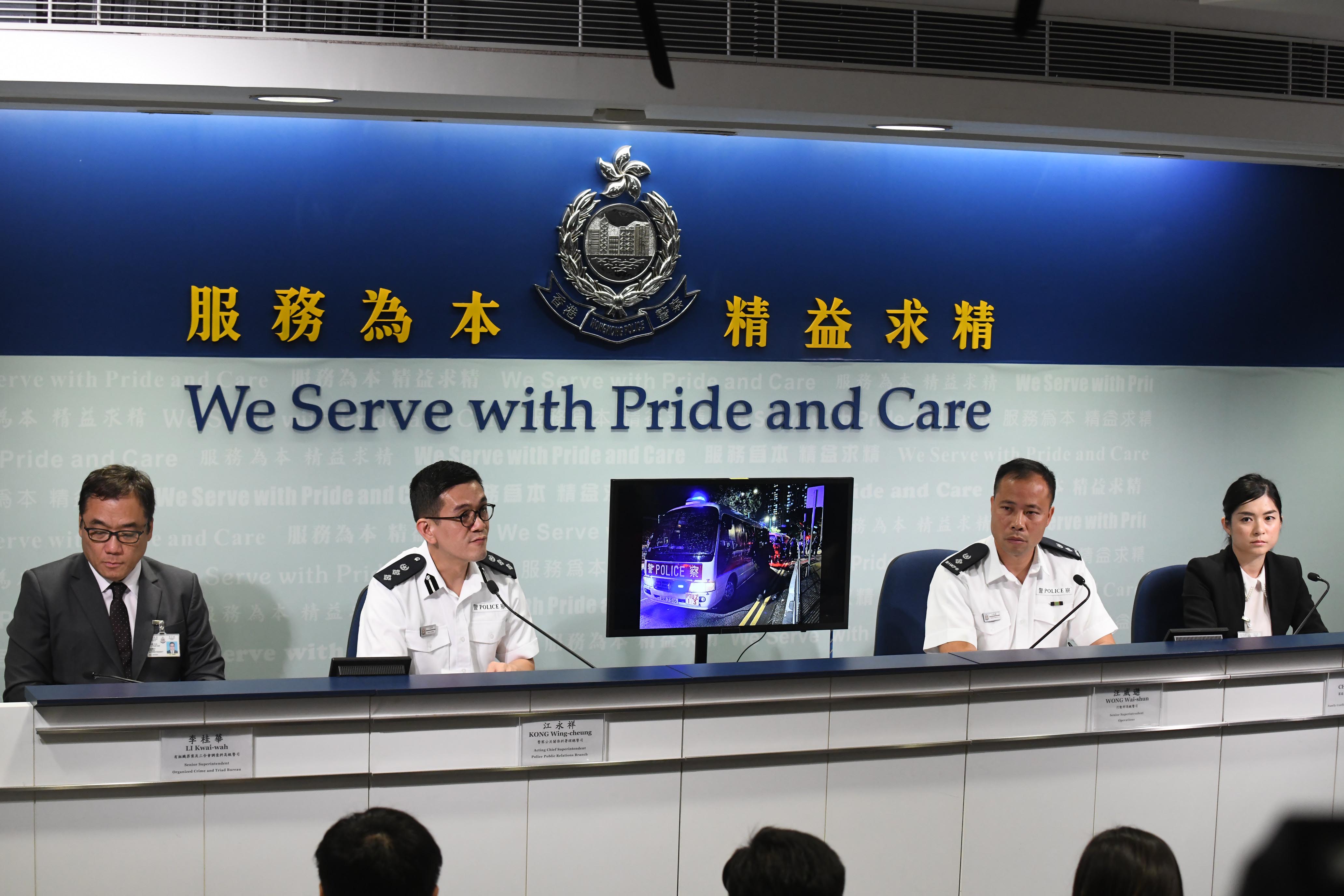 警察公共關係科署理總警司江永祥、有組織罪案及三合會調查科高級警司李桂華、行動部高級警司汪威遜及家庭衝突及性暴力政策組總督察張寶月昨日下午在灣仔警察總部召開記者會。對於有人指控警方對被捕者進行性暴力,警方予以高度關注。江永祥表示,投訴警察課已經主動展開調查,但至今仍然未能接觸到涉事受害人,他呼籲受害人或知情人士主動接觸警方提供資料,並希望大學陪同事主聯絡警方求助。