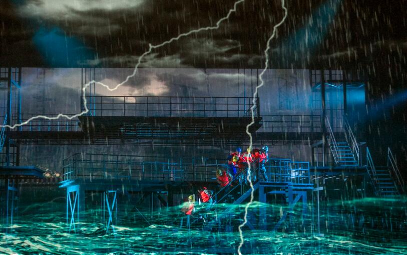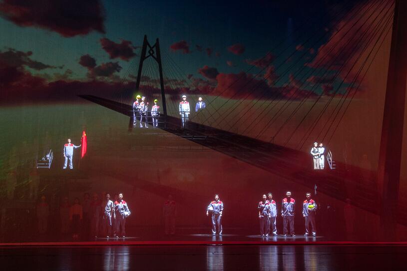 【香港商報網訊】10月11日晚,珠海演藝集團原創大型話劇《龍騰伶仃洋》在珠海大劇院進行試演。《龍騰伶仃洋》聚焦港珠澳大橋建設工程,全景式塑造了建橋工人、技術人員、指揮協調群雕形象,是一部大工業題材的話劇作品。該劇將於10月23日晚港珠澳大橋正式開通一周年之際在珠海大劇院首演。