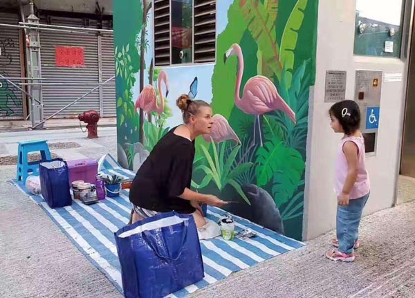 居港芬蘭藝術家重新粉飾被塗污的牆壁。網上圖片