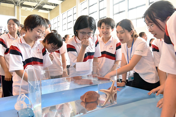 科普教育講師為學生們介紹海洋生物知識。