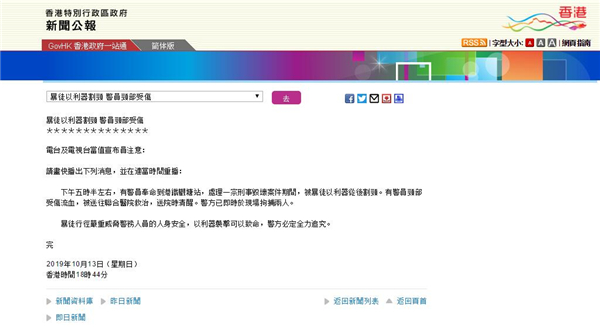 【香港商报网讯】據香港特區政府新聞官網消息,下午五時半左右,有警員奉命到港鐵觀塘站,處理一宗刑事毀壞案件期間,被暴徒以利器從後割頸。有警員頸部受傷流血,被送往聯合醫院救治,送院時清醒。警方已即時於現場拘捕兩人。