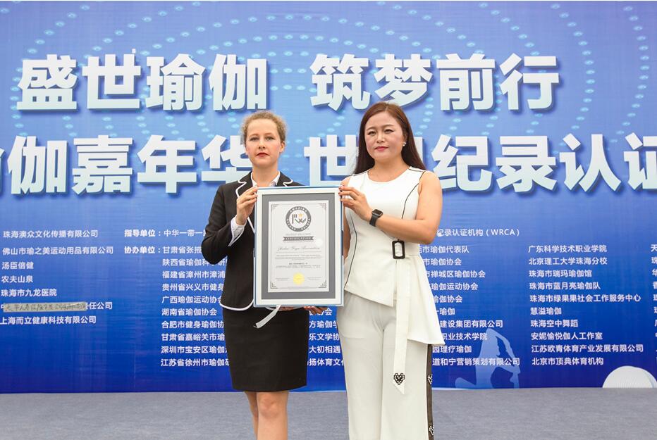 活動中,895人瑜伽愛好者共同以“瑜伽戰士一式”挑戰體式向英國官方世界紀錄發起挑戰,並獲成功,現場每位參與者均獲得由世界紀錄認證機構(WRCA)頒發的“最多人同時做瑜伽戰士一式”證書。同時,珠海市瑜伽協會還向所有參與單位頒發了“優秀組織單位”證書。