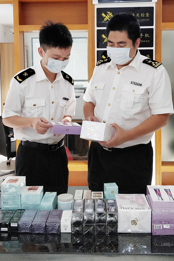10月12日,拱北海關隸屬港珠澳大橋海關深夜連查2起旅客超量攜帶化妝品進境案,涉案化妝品共計68件,總案值達7.4萬元。當日淩晨4時許,男性中國籍旅客孫某和于某陸續從大橋珠海口岸入境隨車廳無申報通道過關,現場關員通過X光機圖像發現二人行李箱中物品存在異常,對其進行截查。經現場查驗,兩名旅客行李箱內均攜帶大量同類化妝品,包括黛珂美容液、雅詩蘭黛精華、蘭蔻套裝、嬌蘭粉底液、歐萊雅眼霜等,遠超自用、合理數量範圍。