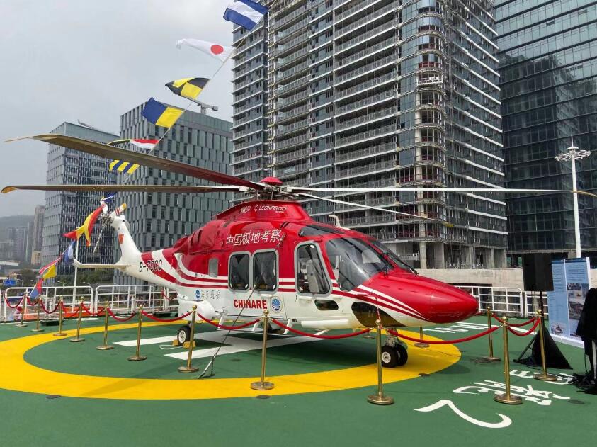 據船員介紹,這架萊奧納多AW169型直升機的功能非常多,在南極區域,船航行遇到特別危急的浮冰時,需要出動直升機進行探冰。另外,直升機還要負責人員接送、物資調運、緊急救援等。