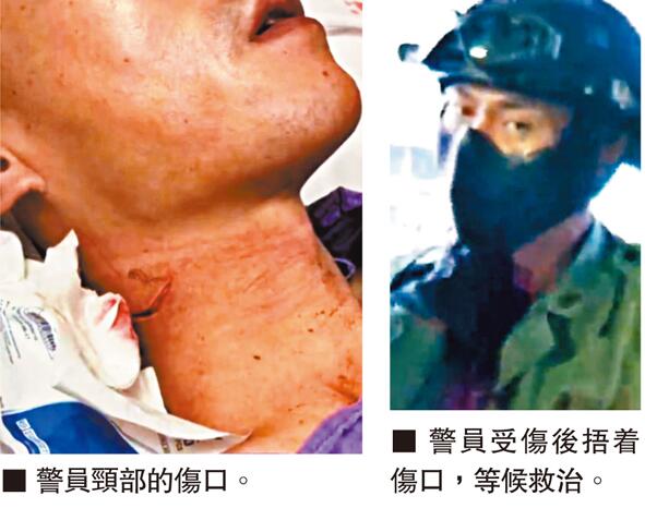 許添力(箭嘴示)從警員身旁伸出鎅刀(紅圈示)施襲。