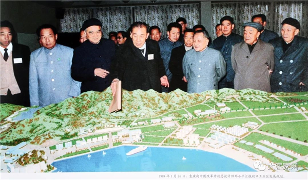 1984年1月26日,邓小平视察蛇口,袁庚在蛇口工业区沙盘前向小平汇报。