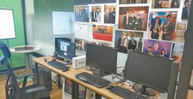 位於廣州的工作室內貼滿合影。