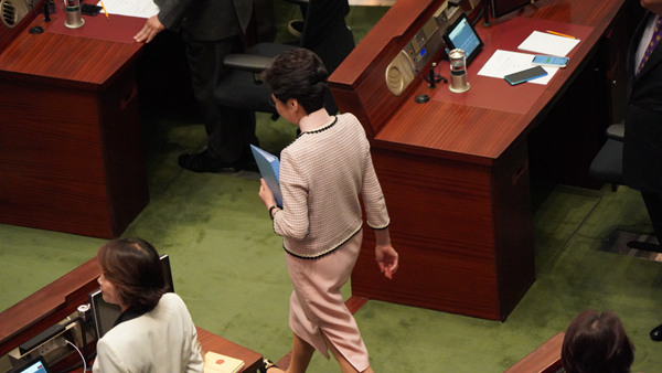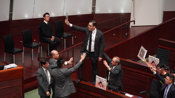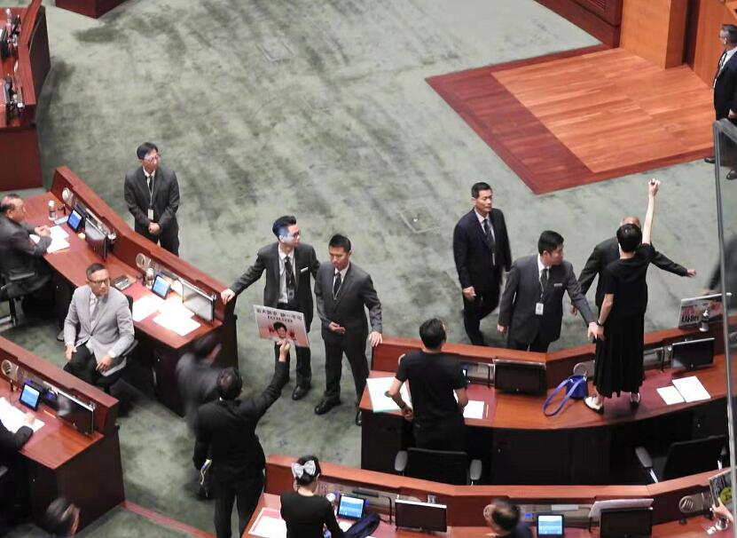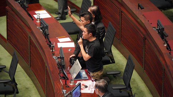 有反對派議員站立在座位上。记者林骏强摄