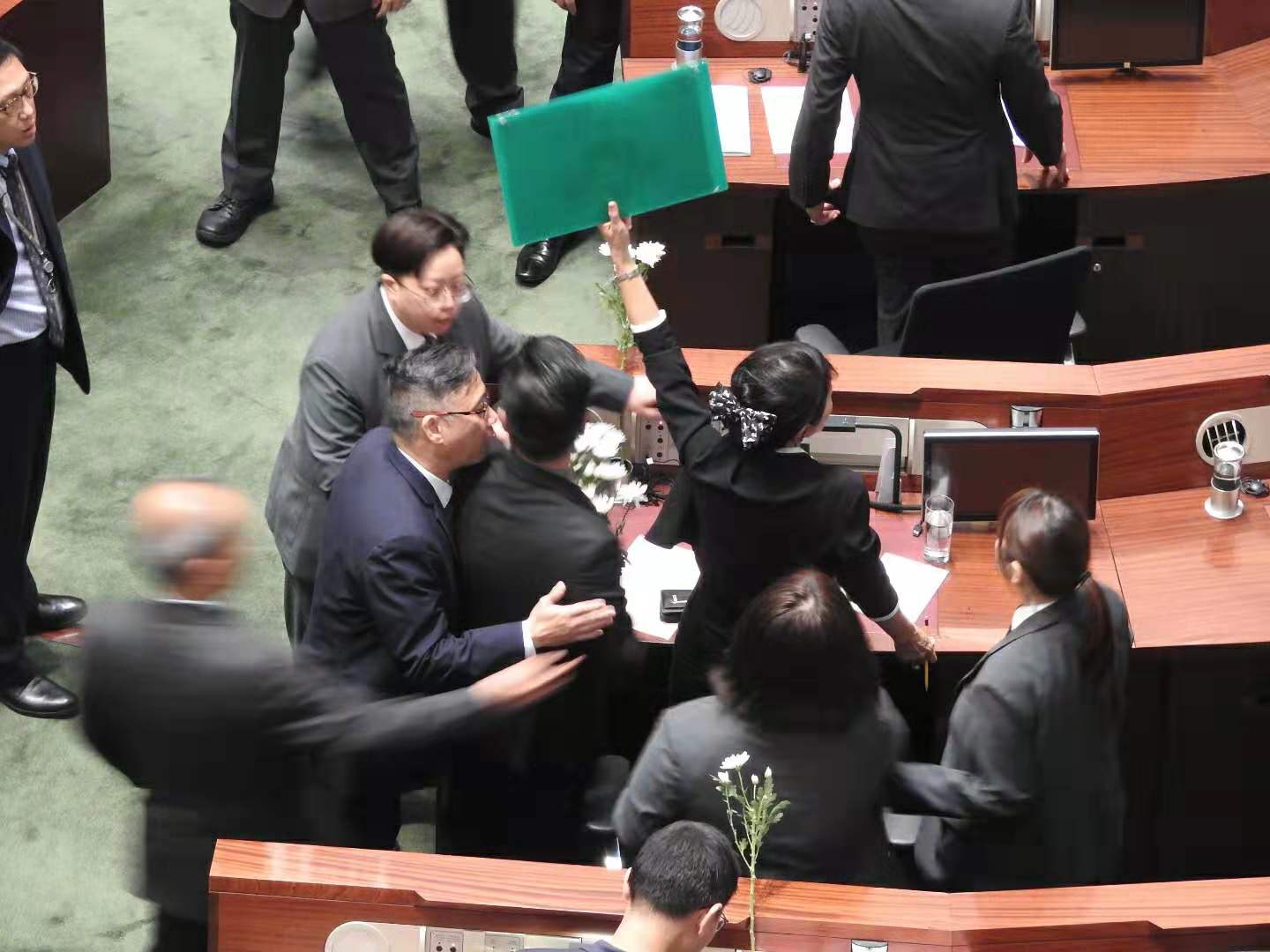 梁君彥請林鄭發言時,民主黨鄺俊宇隨即表示要提出規程問題,指林鄭月娥一意孤行,又要求批准為反修例運動中犧牲的港人默哀。
