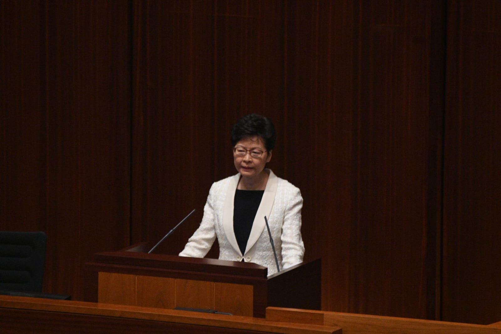 她又說,社會亂局的成因有好多,要平息最重要是依從法治,根據法治處理問題,如果要做違反法治及「一國兩制」的事情,恐怕自己做不到。她又呼籲市民與暴力切割,如果仍有市民對暴力行為表示理解,只會令他們變本加厲,離平息愈來愈遠。