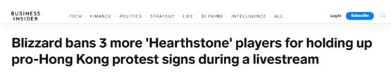商业内幕网:暴雪禁赛三名在直播中打出支持香港抗议口号的“炉石”选手。