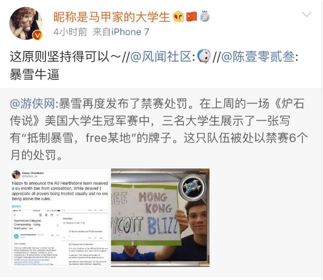 在暴雪公司对这三名涉事学生宣布禁赛的消息传到微博上后,引起网友们一片叫好↓