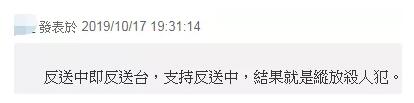 更有网友调侃,支持所谓“反送中”结果就是纵容杀人犯。“这杀人犯真爽,只被法办盗领死者钱财(罪行)。”