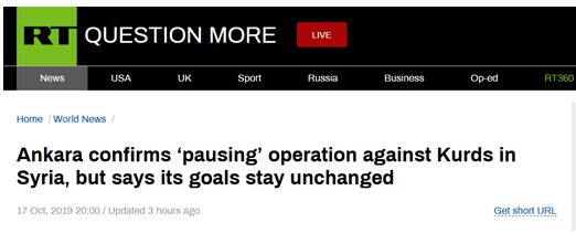 相比之下,RT表示,安卡拉方面的表述却有所不同。