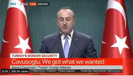 此外,恰武什奥卢还表示,土耳其准备在土叙边界沿线,建立一个纵深约32公里的“安全区”,从幼发拉底河一直延伸到叙利亚与伊拉克边境。他还补充说,该区域将由土耳其军队控制。