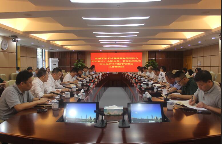 【香港商報訊】記者易小婧通訊員王勝文報道:為深入推進掃黑除惡專項鬥爭工作,落實市委、區委「不忘初心、牢記使命」主題教育部署要求,10月17日下午,羅湖區召開對黃賭毒和黑惡勢力聽之任之、失職失責,甚至包庇縱容、充當保護傘問題專項整治工作推進會,傳達近期中央、省、市有關工作精神,並針對工作中存在的突出問題,部署下一階段重點工作任務。會議由羅湖區副區長、羅湖公安分局局長、區掃黑除惡專項鬥爭領導小組副組長牟春生主持,羅湖區委副書記、政法委書記、區掃黑除惡專項鬥爭領導小組常務副組長周益川出席會議並作重要講話,區掃黑除惡辦及四個專項組負責同志、相關職能部門和各街道分管領導及聯絡員共60餘人參加會議。