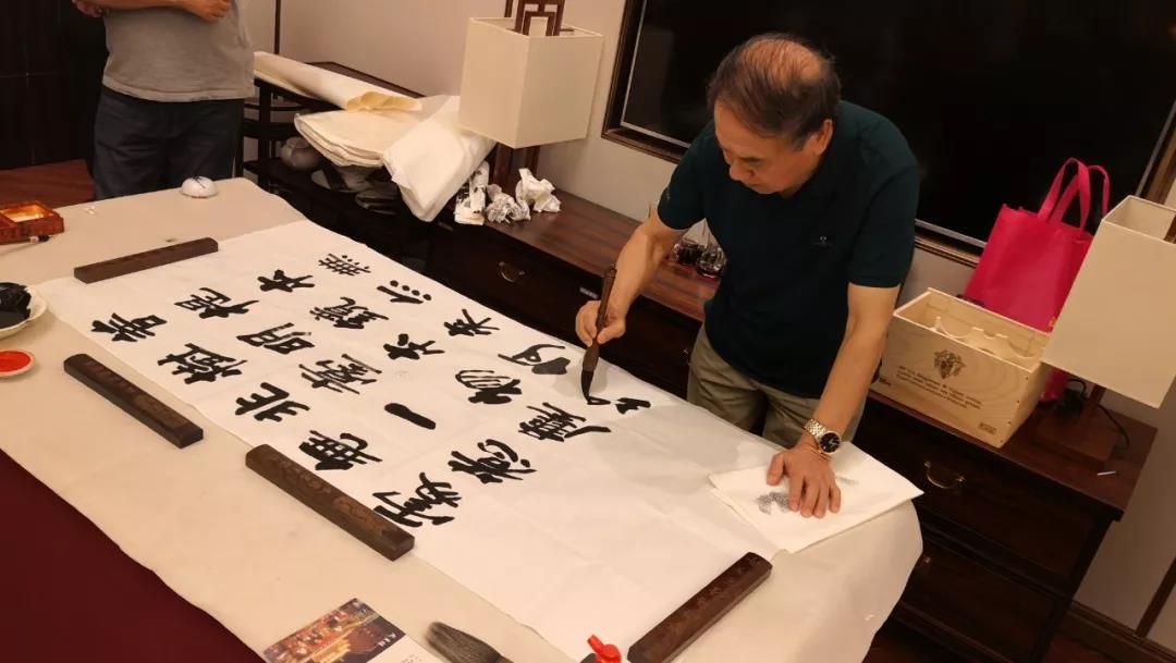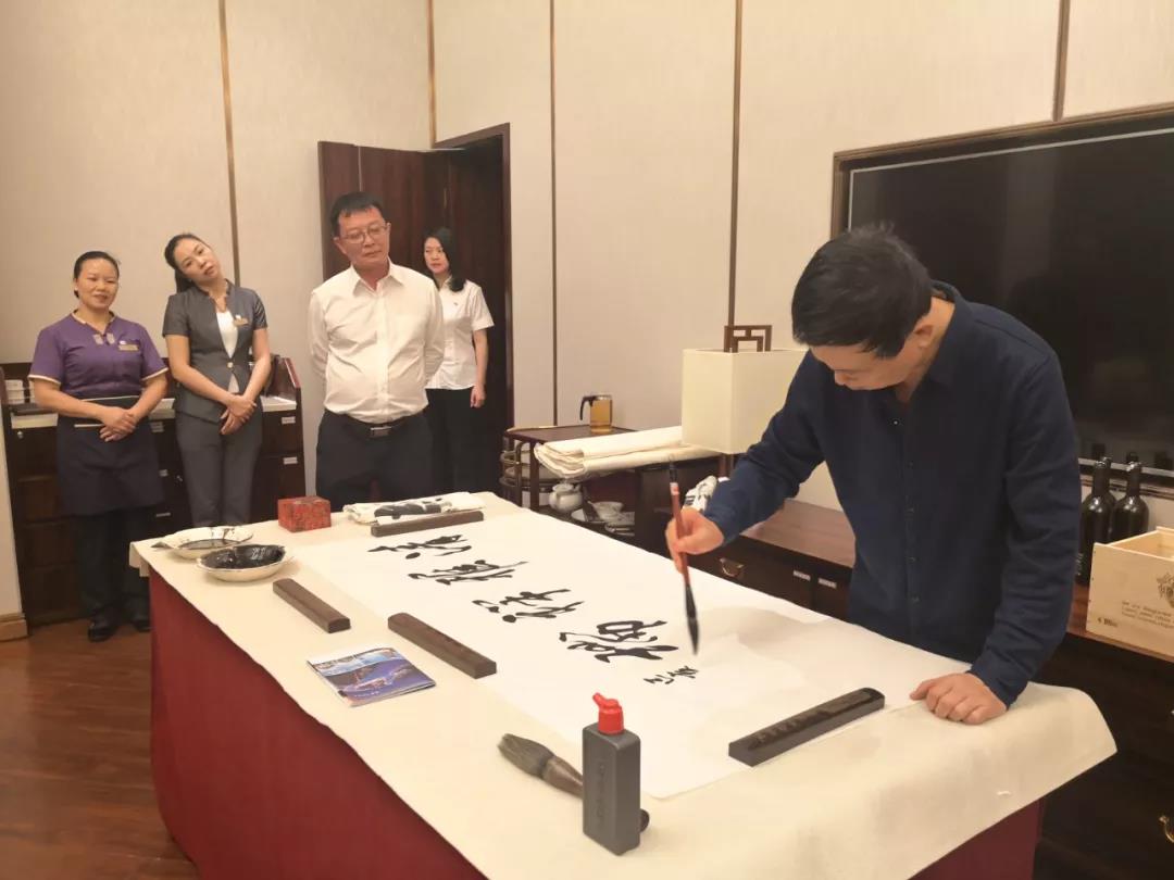 当晚,作家们兴之所至、挥毫泼墨,采风团团长、原广州军区政治部创作室主任、广东省作协副主席唐栋为韶关留下了“菩提本无树、明镜亦非台,本来无一物,何处惹尘埃”的墨宝;福建省作协副主席、冰心研究会创会会长、冰心文学馆馆长王炳根为韶关书写了“丹映南国,霞抚北川”;河南省作家协会副主席,河南省散文学会会长王剑冰则写了“清雅祥瑞”四个大字,大连《海燕》杂志社总编辑李皓留下了“风雅南华”。