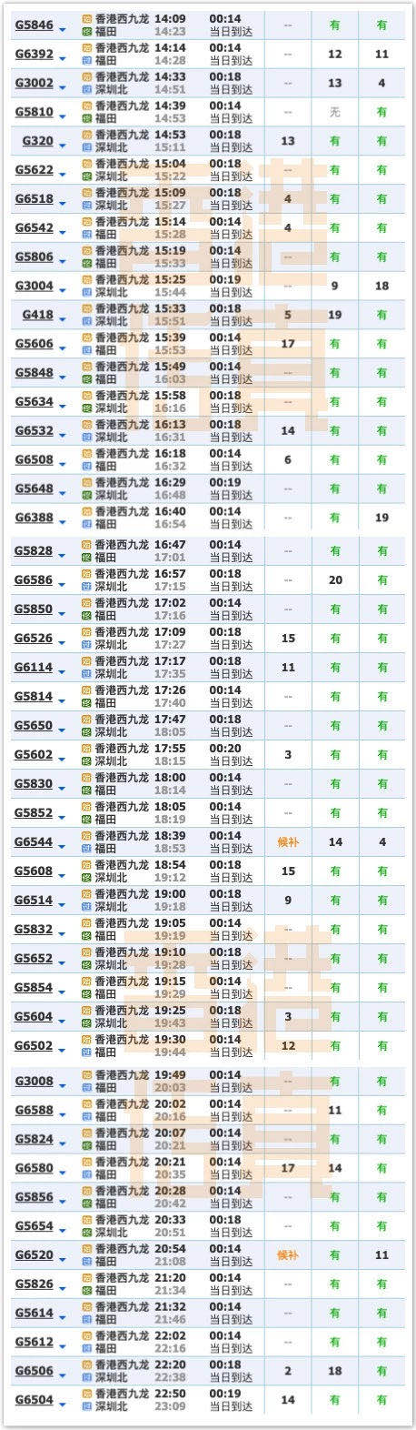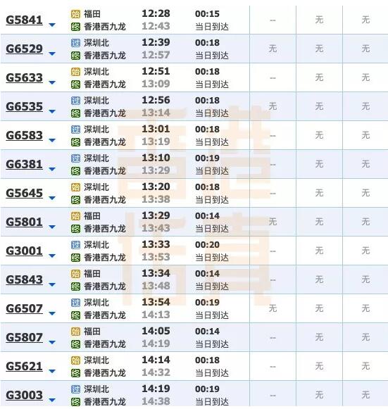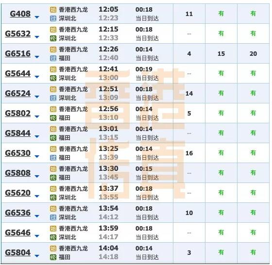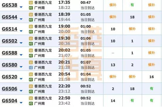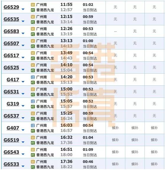以下是香港传真整理的12306班次情况(仅供参考):