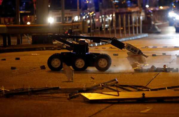 激進暴徒「暴力程度與恐怖主義越行越近」,警方此言不虛。昨午,果真有暴徒於馬路放置疑似炸彈,警方須動用遙控拆彈機械人到場引爆。警方強烈譴責暴徒上述行為,強調任何人非法及惡意引爆炸彈,無論是否對其他人或財產造成實際傷害均屬犯罪,最高可處終身監禁。