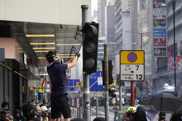 交通燈成暴徒破壞目標。記者馮俊文攝