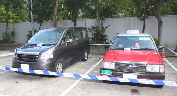 涉案的士司機(上圖)及七人車司機(下圖)被捕後蒙頭帶署。