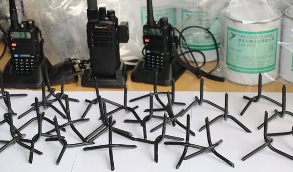 車上搜出可刺破車胎的地釘及通訊用無線對講機。