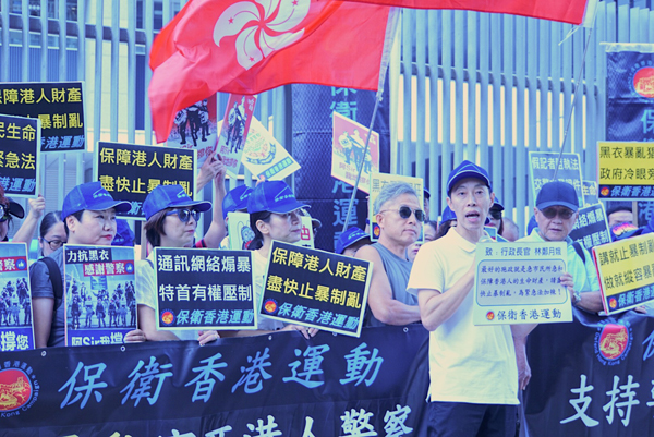 【香港商報網訊】記者秦昕可、羅璇報導:民間團體「保衛香港運動」今日約50人來到政府總部請願,支持何君堯議員提議,啟動《緊急條例》第2(2)(a):政府可規管通訊方法,予以管制及壓制。