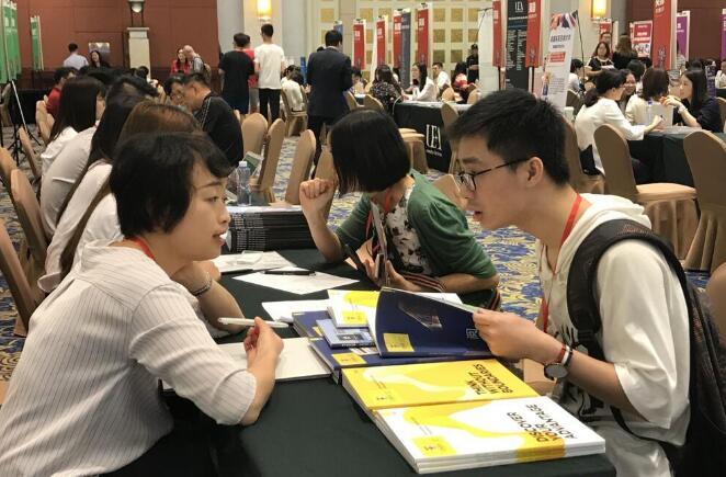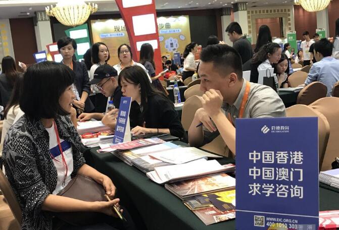 受修例風波影響,今年內地學子家長赴港求學意願下降。圖為啟德教育展上,一名家長在咨詢赴港澳留學事宜。(文汇网盧靜怡 攝)