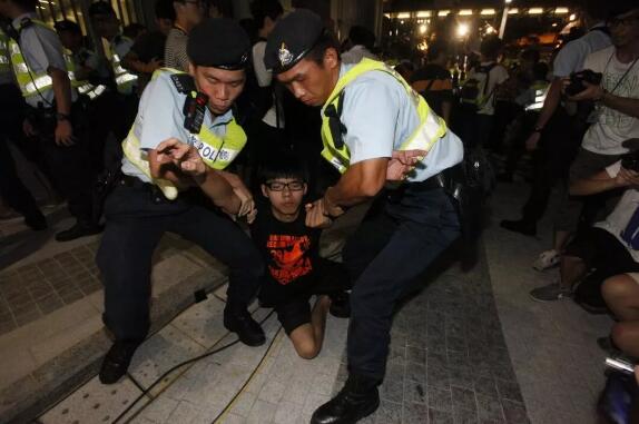 2014年09月27日,違法「佔中」期間,黃之鋒在政總公民廣場被捕(香港文匯報)