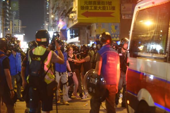 【香港商報網訊】元朗西鐵站7月21日晚上有白衣暴徒襲擊市民及乘客,造成多人受傷,事件至今已3個月。大批非法示威者昨晚在元朗大馬路及大棠路等多處聚集,期間有暴徒堵路及破壞多個設施,防暴警察發射多枚催淚彈驅散並制服多人,人群到午夜後漸散去。