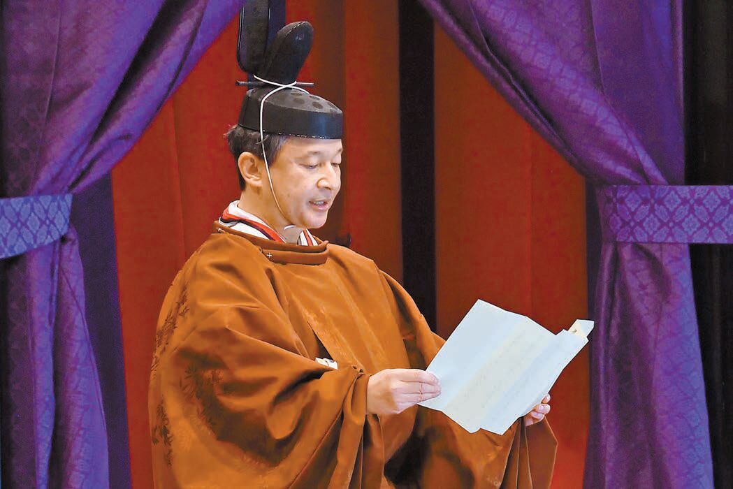 日皇「即位禮正殿之儀」是日本憲法規定的國事行為(活動)。天皇當日身穿傳統裝束「黃櫨染袍」,站上源自天孫降臨神話的高御座,宣告了即位。