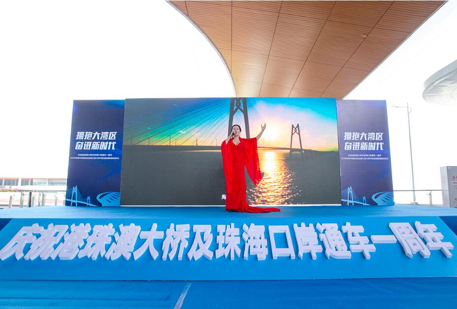 活動最後,在人群的簇擁下,港珠澳大橋及珠海口岸各個崗位的工作者代表等一同合唱《我和我的祖國》。熟悉的旋律,動人的歌聲讓口岸處處洋溢著運營一周年的喜慶氣氛。