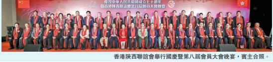 【香港商報网訊】記者盧慧萍報道︰香港陝西聯誼會慶祝中華人民共和國成立70周年暨第八屆會員大會晚宴日前於香格里拉酒店舉行。主禮嘉賓有中聯辦副主任何靖、外交部駐港副特派員楊義瑞、解放軍駐港部隊副政委陳亞丁、陝西省政協副主席祝列克、商務及經濟發展局局長邱騰華以及香港陝西聯誼會主席鄭翔玲等與該會同仁共申慶賀。當晚筵開40席,逾400位政商界名人出席,場面熱鬧。