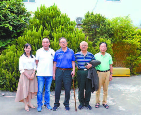 採風團團長蔣子龍(中)等與鴻泰搬運隊負責人紀耀宏(左二)合影留念