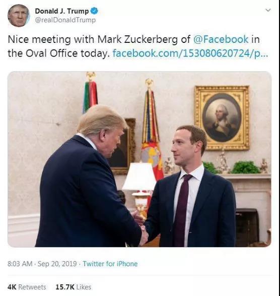 特朗普曾多次批评脸书「反特朗普」,认为他们对保守派存有偏见。今年9月,特朗普和扎克伯格会面,事后还发推称两人会面愉快。