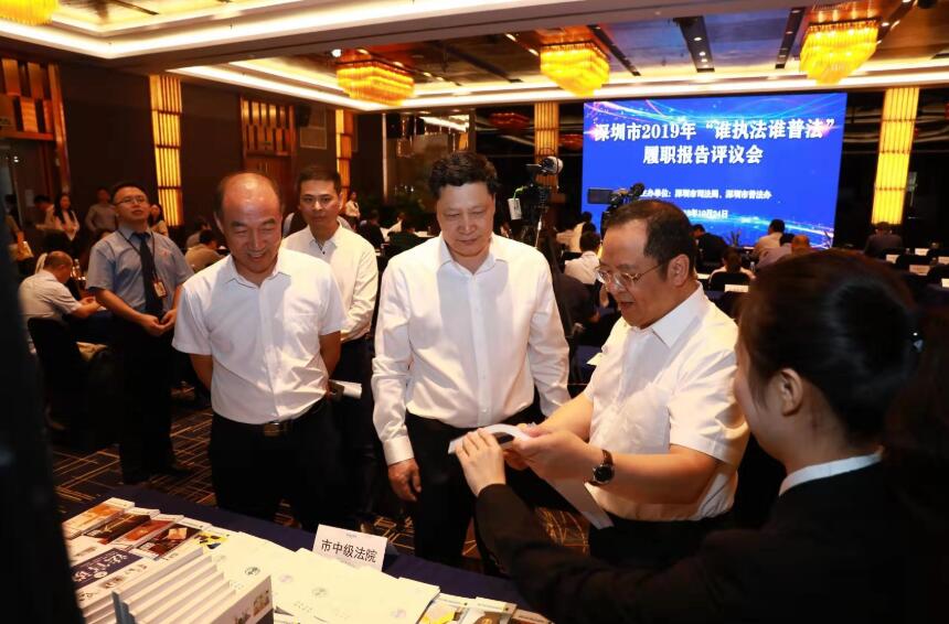 【香港商報訊】記者徐艷瓊、通訊員周其麗報道:10月24日上午,深圳市召開2019年國家機關”誰執法誰普法“履職報告評議會,深圳市中級法院、深圳市檢察院、深圳市教育局、深圳市民政局、深圳市市場監管局5個被評議單位通過通過匯報視頻、展板、普法成果等現場展示了普法履職情況。 由深圳市人大代表、政協委員、基層代表、法學專家、媒體代表組成的評議團結合實地考察的情況,對各單位的履職報告情況進行現場打分,現場單位互評,最后綜合前期社會公眾評議情況,五家受評單位均獲高分。